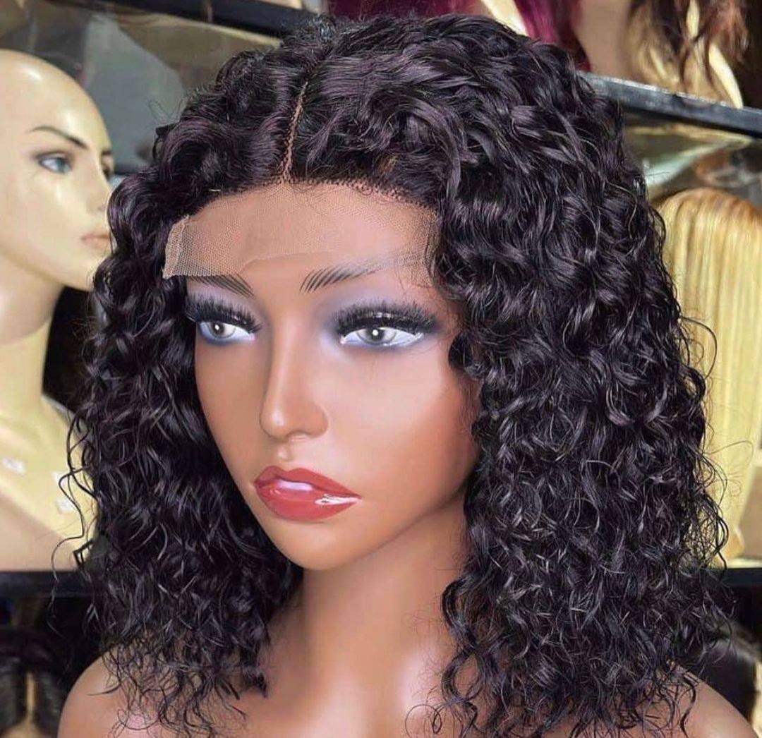 Women Wig Short Curly Human Hair Wigs Lace Frontal T Part Wave Etsy Uk